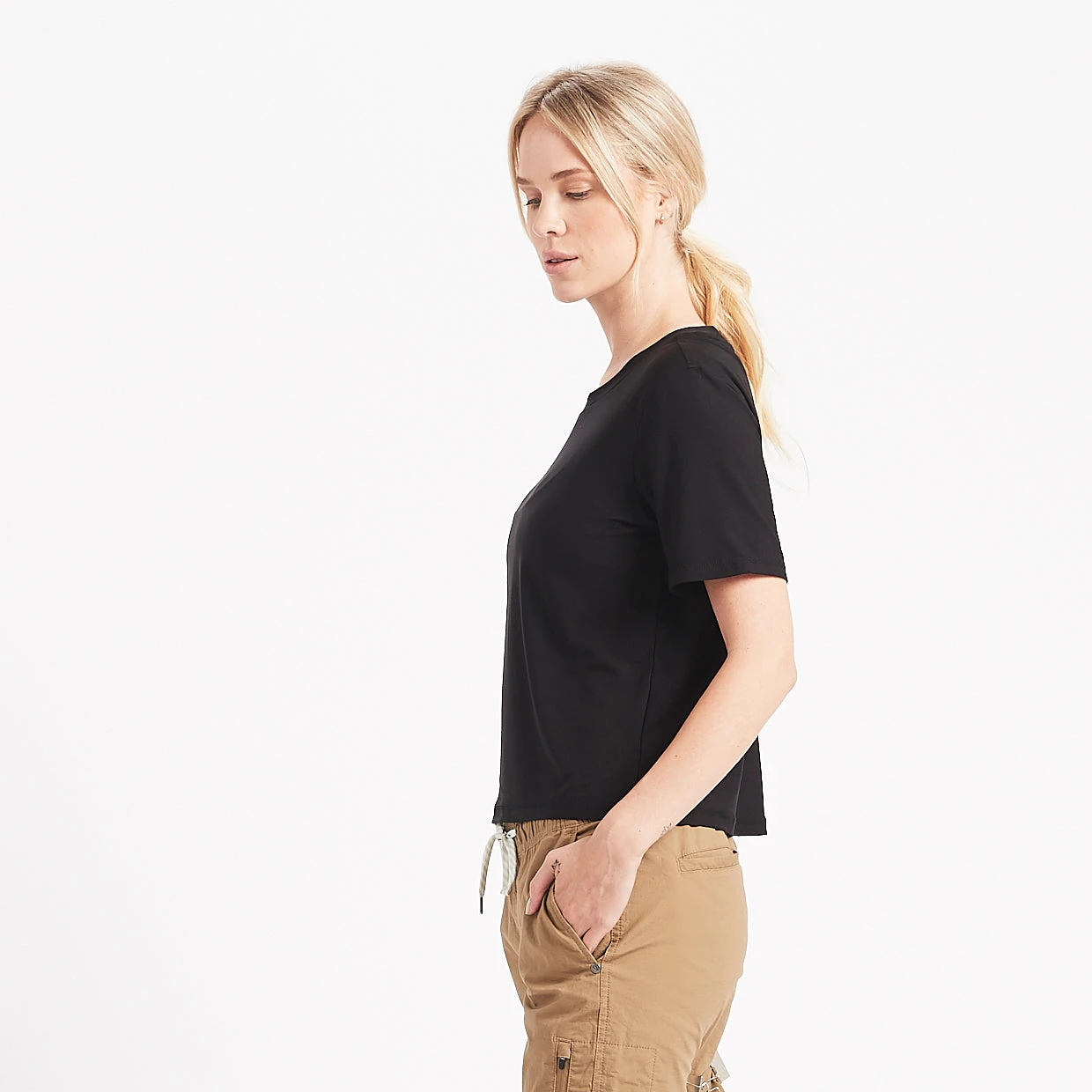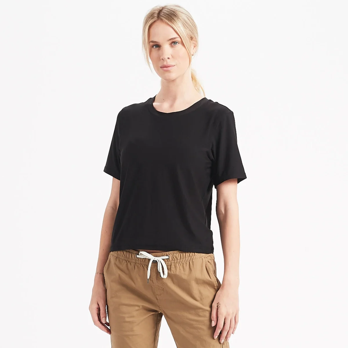 This will be your new favorite go-to tee whether you’re getting active or lounging around. The relaxed fit and our extra-soft performance stretch knit fabric are a match made in heaven. Great for yoga, hiking, traveling and chilling.