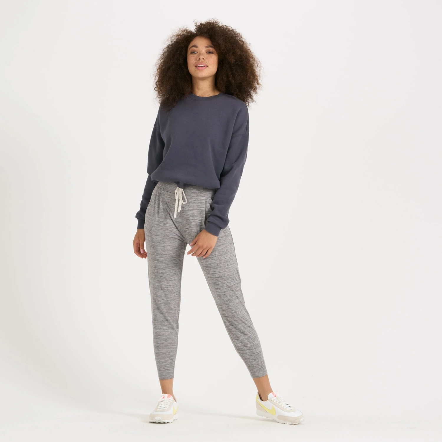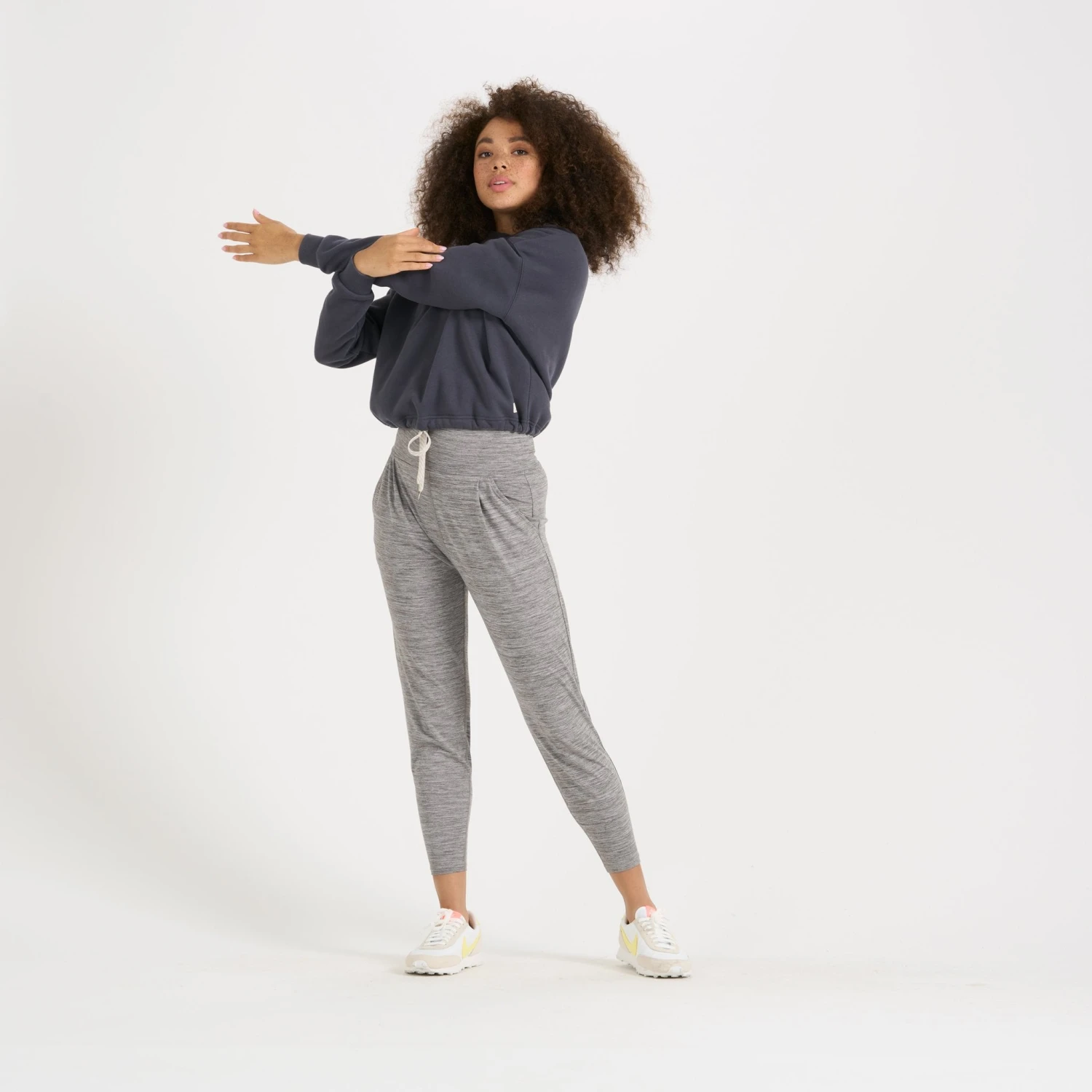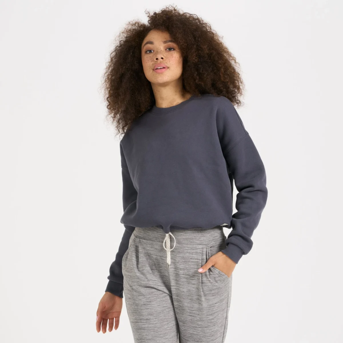 Sueded and stretchy, the brushed french terry fabric of the Restore offers a soft touch and a smooth finish. The Restore Crew is a cozy crew neck with a drawstring cinch at the bottom hem so you can choose between fitted or relaxed. Great for running, training, yoga, traveling and chilling.